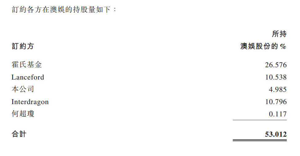 根据协议内容来看,订约各方在澳娱的持股量如下: