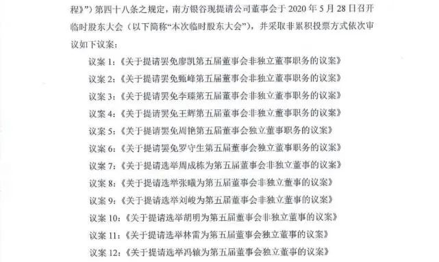 在罢免6位董事的同时,南方银谷提请选举6位新的董事,董事会席位之争显而易见。