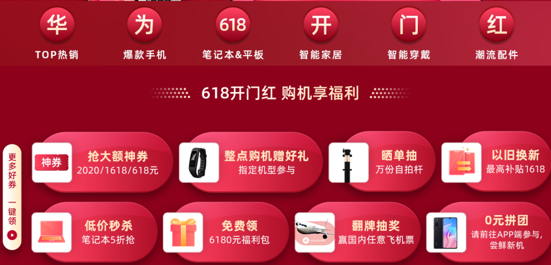 华为、苹果、荣耀、三星、小米等手机品牌均加入到购物狂欢节中。华为商城在首页展示出618购物盛典的精彩画面,热销产品包括手机、笔记本&平板、智能家居、智能穿戴、潮流配件等。小米生态链众多明星产品如米家喷墨打印一体机、小米50W二合一充电器/充电宝、Redmi显示器1A 23.8英寸、米家恒温电水壶Pro等新品在小米商城、京东预定/发售。