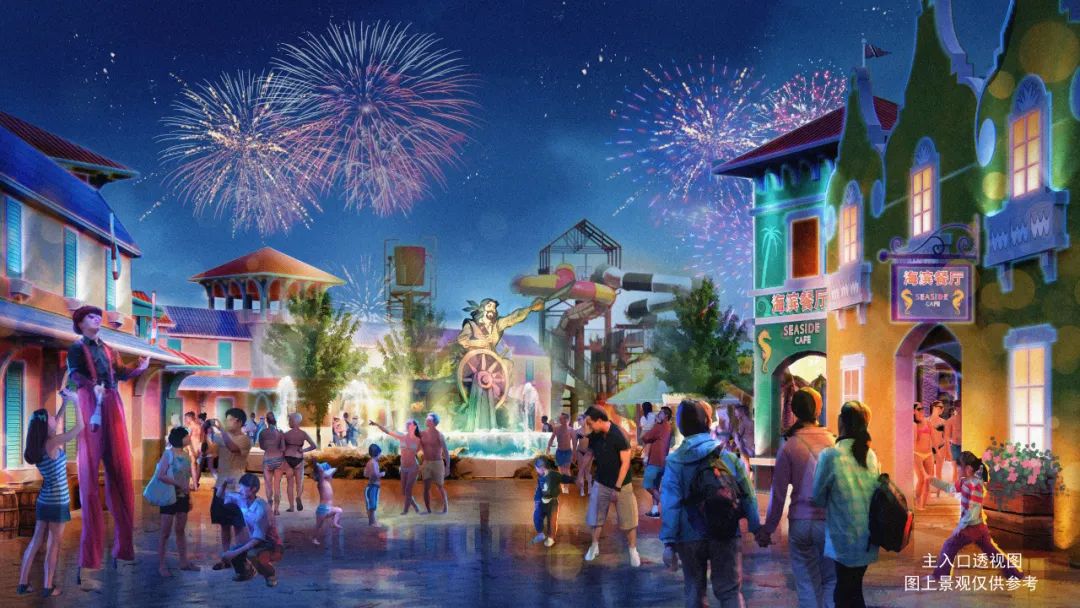 根据双方合作协议,该度假区项目规划面积4365亩。项目规划建设乐园、商业、酒店等板块。其中,乐园板块规划有室外水乐园、陆乐园、童乐园、极地冰雪世界等,水乐园及部分商业计划于2021年7月建成运营,其他乐园、酒店、商业将逐步分期开业。