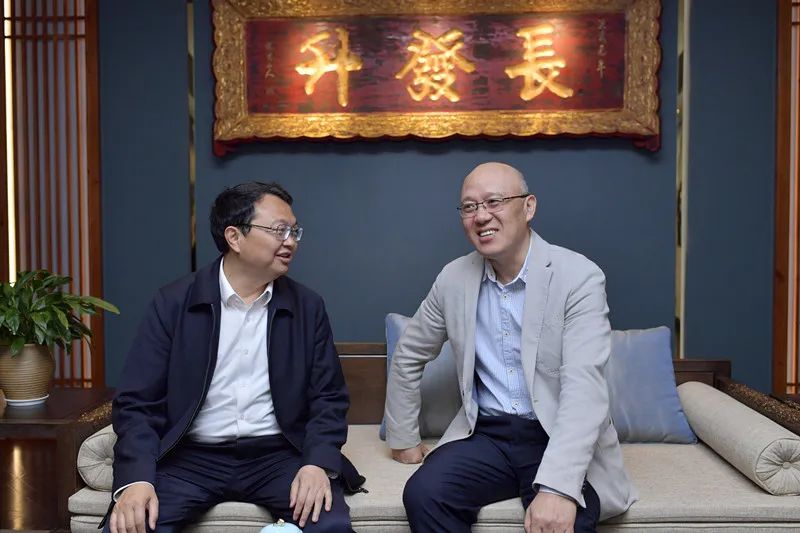图为何伟社长与五粮液集团总经理、五粮液股份有限公司董事长曾从钦(左)交流 宋春雨/摄