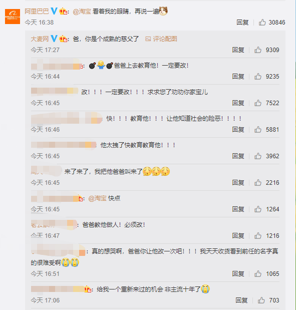 与此同时,网友纷纷表示,希望淘宝id也能改。结果,淘宝直接回复:不改。