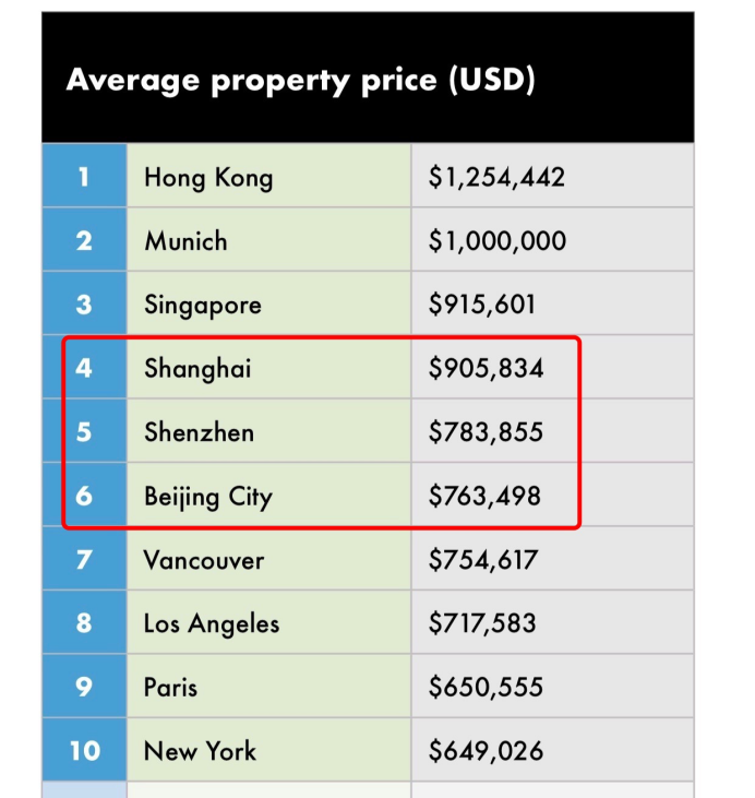 近日,美国商业地产机构CBRE世邦魏理仕发布的报告显示,2019年全球住宅价格最高的十大城市中有一半位于亚洲,中国香港仍是全球房价最贵城市。另外,上海、深圳和北京的住宅套均价格再次跻身全球前十。