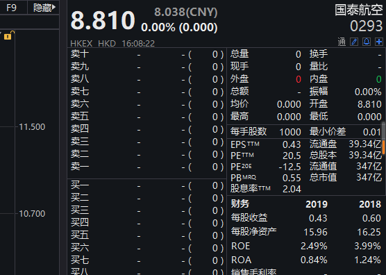 6月9日盘前,国泰航空、太古股份公司A、B股和中国国航H股同时在港股市场停牌,A股中国国航也宣布停牌。午间,国泰航空进一步披露,董事局宣布建议实施一项资本重组计划,筹资总额约390亿港元。国泰航空最新股价为8.81港元,总市值347亿港元。中国国航也于当日晚间公告了这一消息。上述停牌公司均将于6月10日复牌。
