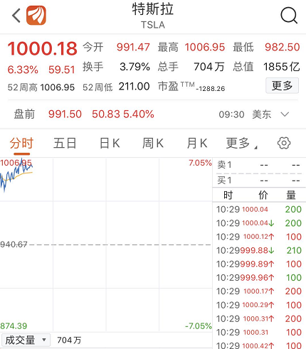 6月10日,特斯拉盘中一度突破1000美元,市值突破1850亿美元,折合人民币超过1.3万亿元,超过丰田汽车成为全球市场价值最高的汽车公司。