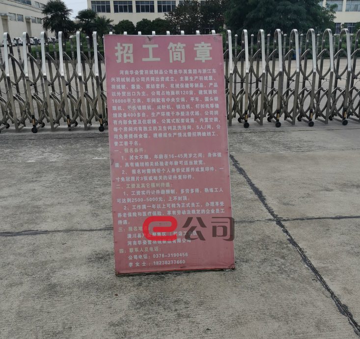 虽然由于资金压力带来了一连串生产经营问题,但证券时报·e公司记者尚未在位于潢川的华英旗下冻品、熟食、羽绒等众多厂房外围观察到停工停产的景象。华英集团禽类加工二厂厂区外,运送货物的大车还在来来往往。华英旗下羽绒制品工厂大门外,也醒目放置着招工的牌子。吴强也称,有政府资金支撑,目前华英各个工厂都还基本维持着生产经营。“前两年有禽流感的时候,企业生产经营困难,一度出现过停工情况。但这么多工厂,直接就业人数就有数千人,企业再困难也得保证维持运转才行。”
