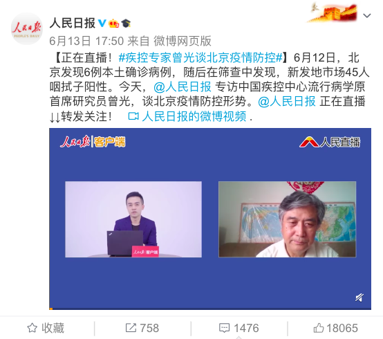 曾光还表示,我们说外防输入、内防反弹,北京新发地的疫情到底叫“输入”还是“反弹”,还需要探索,因为有些产品涉及到外国进口,比如三文鱼,还有同样进口的同一批产品等,它的冷藏环境可能是适合病毒生存的。