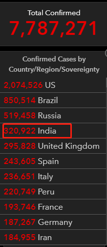 而在海外,疫情仍十分严峻。全球确诊超778.7万例,累计死亡43万例。其中, 印度连日刷新单日最大增福,巴西确诊数也在持续猛增……