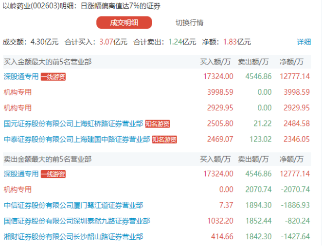 盘面上,与新冠肺炎相关的题材卷土重来,口罩、体外诊断、医疗器械、基因检测、生物疫苗、抗生素等指数大涨超过4%。口罩概念股中,有9股涨停,分别是搜于特、道恩股份、尚荣医疗、延江股份、英科医疗等。从龙虎榜资金数据来看,3只疫情相关题材股获得龙虎榜资金净买入超亿元,分别是达安基因、以岭药业、汤臣倍健,其中昔日抗流感概念龙头以岭药业获深股通和机构席位合力买入,单深股通专用席位净买入额就达到1.28亿元。