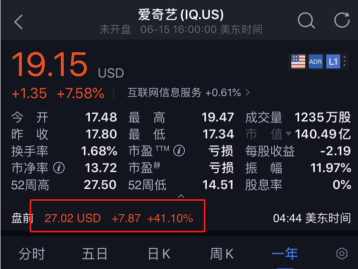 受消息影响,爱奇艺股价盘前涨超41%!