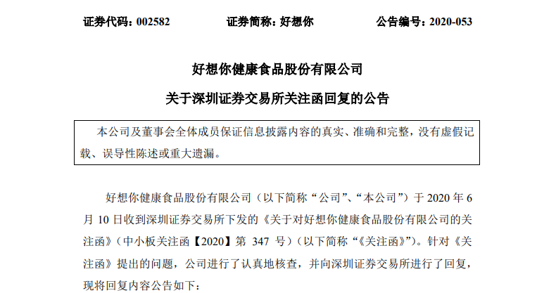 一石激起千层浪。在市场质疑声中,深交所于6月10日火速向好想你下发了监管问询函,要求上市公司详细说明回购价格的测算依据、回购的可行性以及是否为了配合股东减持等一系列问题。