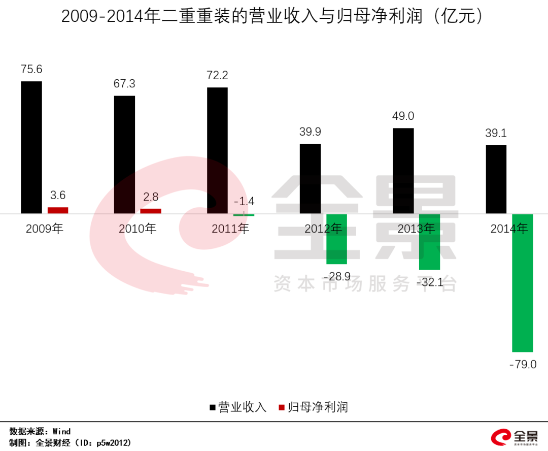 上市第二年,便遭遇业绩亏损,亏损金额为1.39亿元,此后便一蹶不振,亏损金额越来越大,2014年一度巨亏高达79亿元,连续4年遭遇亏损。