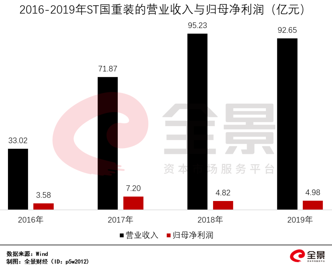 根据ST国重装重新上市报告书,2017年至2019年,国机重装分别实现营业收入71.87亿元、95.23亿元、92.65亿元,归母净利润分别为7.2亿元、4.82亿元、4.98亿元。