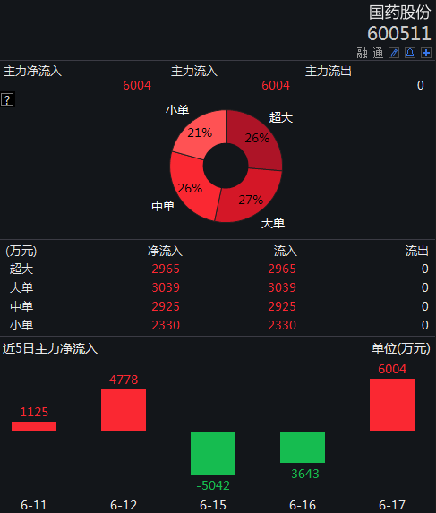 从资金面上看,当天上午,超6000万主力资金净流入,主力流出为零。
