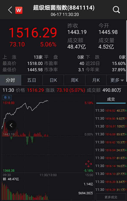 从盘面上看,超级细菌指数涨超5%以上,领涨两市。而生物疫苗指数也大涨超4%以上。