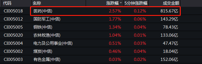 从行业看,当天上午,医药板块成交量突破800亿元。