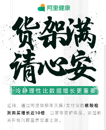 当天,阿里健康官方微博也发消息称,近日通过阿里健康在天猫/支付宝的核酸检测购买增长近10倍,口罩等防护用品,以及新冠肺炎在线问医量亦显著上涨。