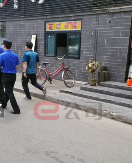 北京城管执法部门工作人员在查询餐饮点落实疫情防控责任。