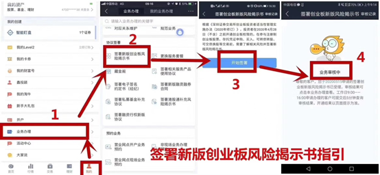 以国信证券为例,通过金太阳网上交易软件,操作路径:金太阳—我的—业务办理—签署创业板新版风险揭示书—开始答题。