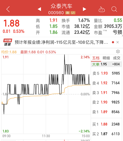 而昨日(6月18日),众泰汽车股价微涨0.53%,收报1.88元,市值为38.1亿元。亏损金额比目前公司市值2倍还多。借壳上市才3年,众泰汽车已经“病入膏肓”,就看后续还能否绝处逢生。