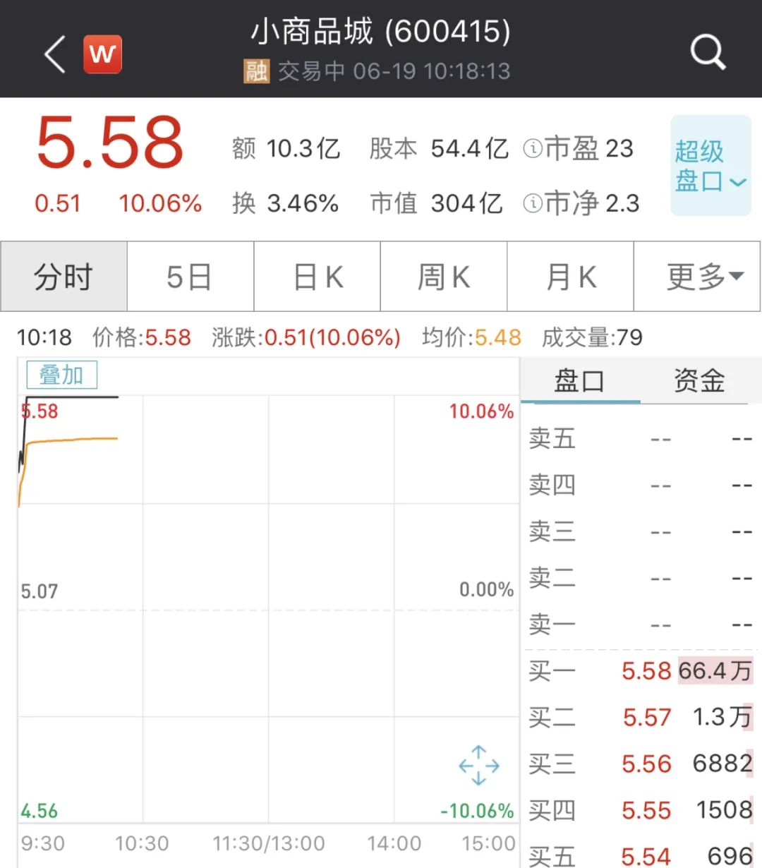 受到小商品城拟与阿里共同出资设立合资公司消息影响,今早开盘没多久,小商品城就封在涨停,报5.58元,这也是该股近一年第6次涨停。