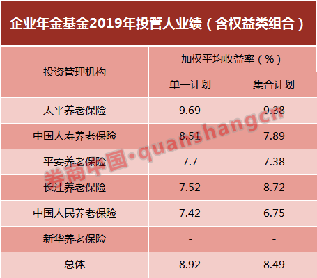 投资管理人2019年投资业绩方面,在含权益类组合中,太平养老投资业绩在各养老险公司中表现最优,国寿养老和平安养老分别第二、三位。