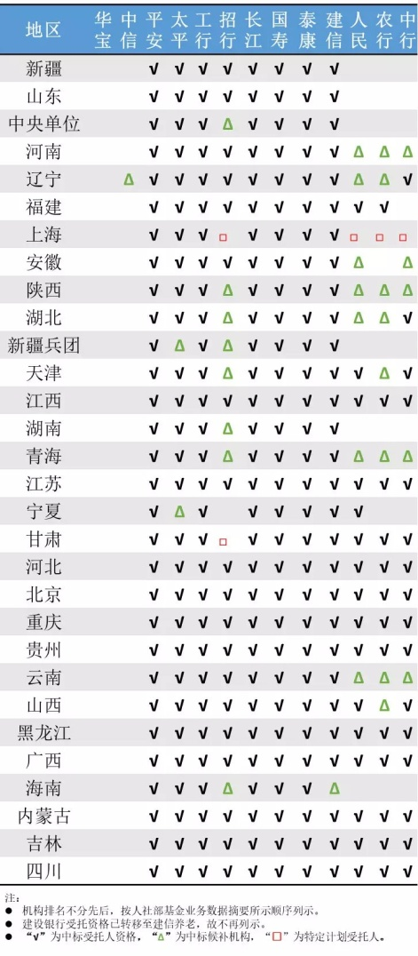 各地职业年金受托人招标情况如下: