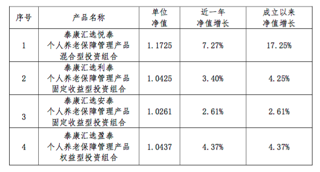 截至2019年末,人保养老暂未发行个人养老保障管理产品,已发行团体型养老保障管理产品1个,包含投资组合5个,存量资产规模共计0.16亿元,2019年平均年化收益率3.83%。