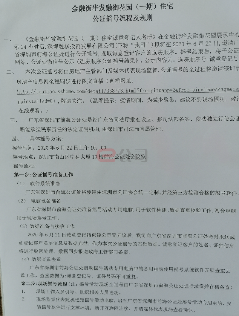光明住建局在隔天发布公告,称金融街将公证摇号选房,顺序与认筹顺序无关,并要求开发商认筹时间不少于5天,确保购房者有充足时间认筹。