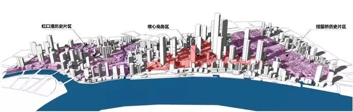 根据上海规划资源局于2月公示的《虹口区北外滩街道控制性详细规划修编(公众参与草案)》,北外滩新一轮规划的总体格局是“一心两片,新旧融合”,中部核心商务区高强度、高密度开发,两侧提篮桥、虹口港历史片区形成低层高密度空间格局,全域构建新旧融合、以人为本的公共空间网络。
