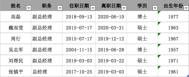 5位高管相继离职