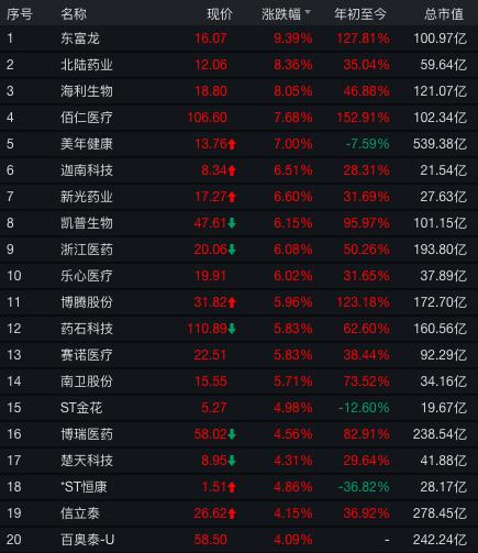 年内医药板块表现强势
