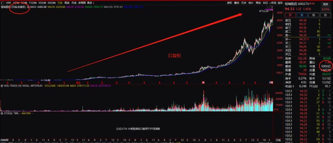 没有最高,只有更高,A股医药一哥今日再创新高,市值突破5000亿元。17年前要是买了30万,现在就差不多1亿了,小目标轻松实现。