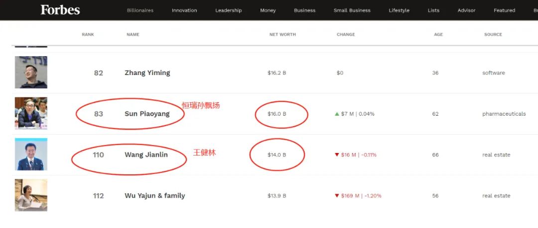 股价猛涨,恒瑞医药实控人孙飘扬的财富也不断增长,根据福布斯最新富豪榜,孙飘扬的身家为160亿美元,超过了前首富王健林的140亿美元。