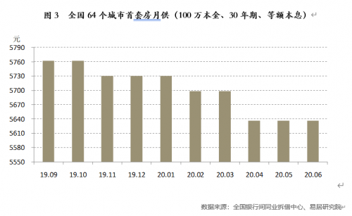严跃进对记者算了一笔账,基于“100万元本金、30年期、等额本息”的按揭贷款模式,6月份,全国64个城市月供为5637元,对比年初5731元的水平,减少了94元。
