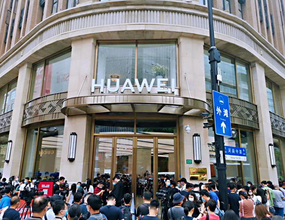 华为全球最大旗舰店今日落户上海南京东路,与苹果、三星同台展开正面对垒……