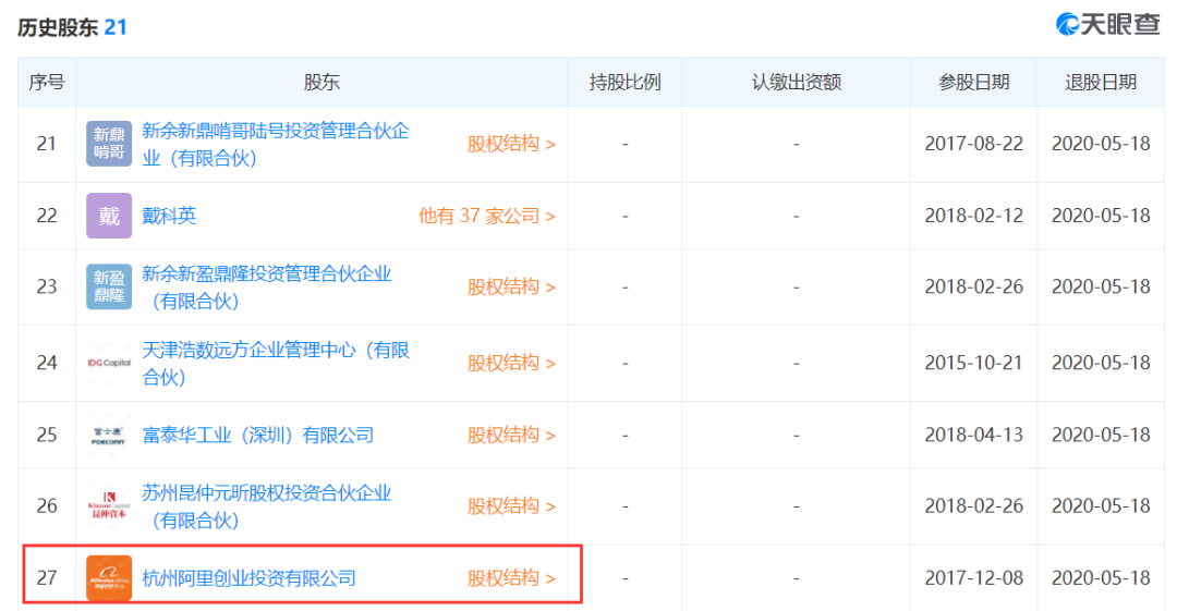根据天眼查显示,小鹏汽车的工商注册公司“广州橙行智动汽车科技有限公司”的股权结构中,新增一名股东方为“杭州阿里创业投资有限公司”,占股10%。