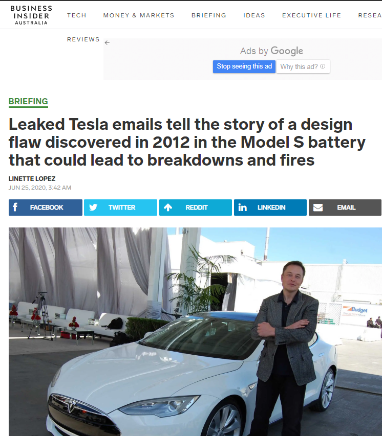 特斯拉很可能从2012年起,就知道Model S电池有起火风险。