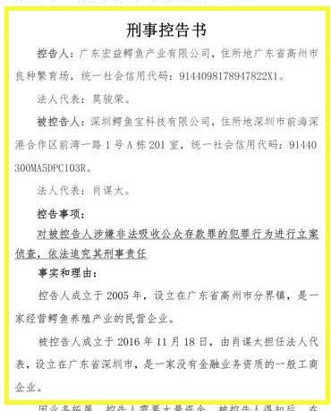 据自媒体“牛角君”报道,广东宏益鳄鱼产业有限公司控告深圳鳄鱼宝科技有限公司,利用鳄鱼宝平台涉嫌非法吸收公众存款罪。