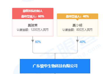 莫骏荣与莫小明合股的企业,还有广东骏华生物科技有限公司,其中莫骏荣持股60%,莫小明持股40%。