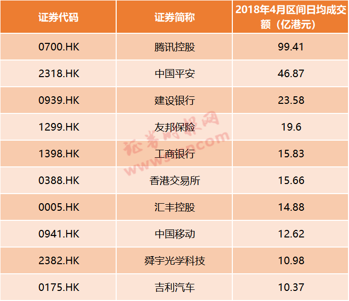 而排名前十的活跃个股中,内资企业亦占据8席,剩余两席位分别是港交所和友邦保险。