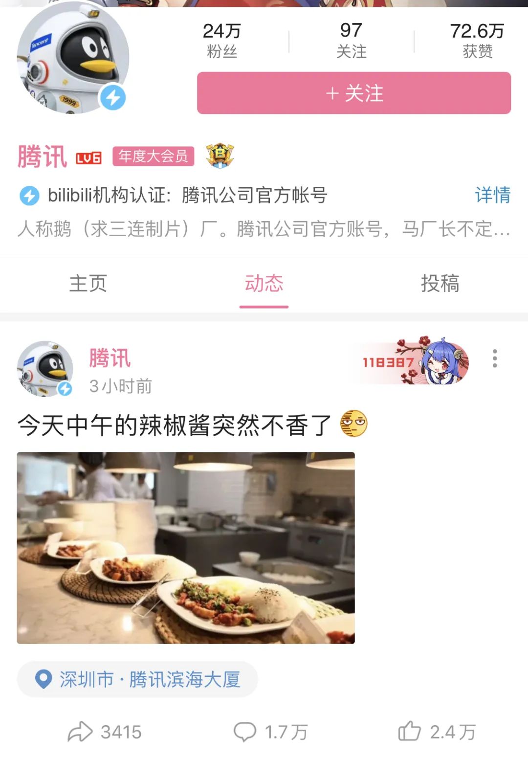 截至发稿,腾讯方面暂未作出最新回应,但其B站账号今天中午发布了新的状态:今天中午的辣椒酱突然不香了。