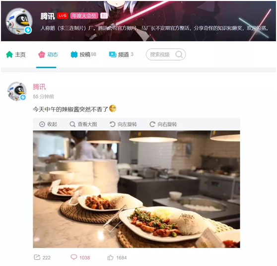 而腾讯则迅速在B站发了一条动态:今天中午的辣椒酱突然不香了。