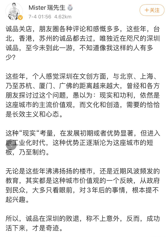 随后,深圳万象天地在其官方微信也表示,诚品生活会在年底关闭,安好,再会!