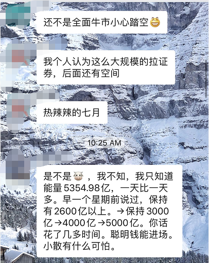 微信群里也满满的“牛市”气息,不少群友害怕踏空。