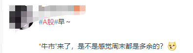 甚至有人表示,“牛市”来了,感觉周末都是多余的。