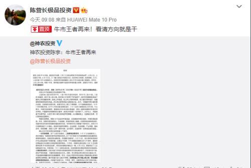 北京神农投资总经理陈宇微博表示,这一轮是“注册牛”,看清方向就是干!