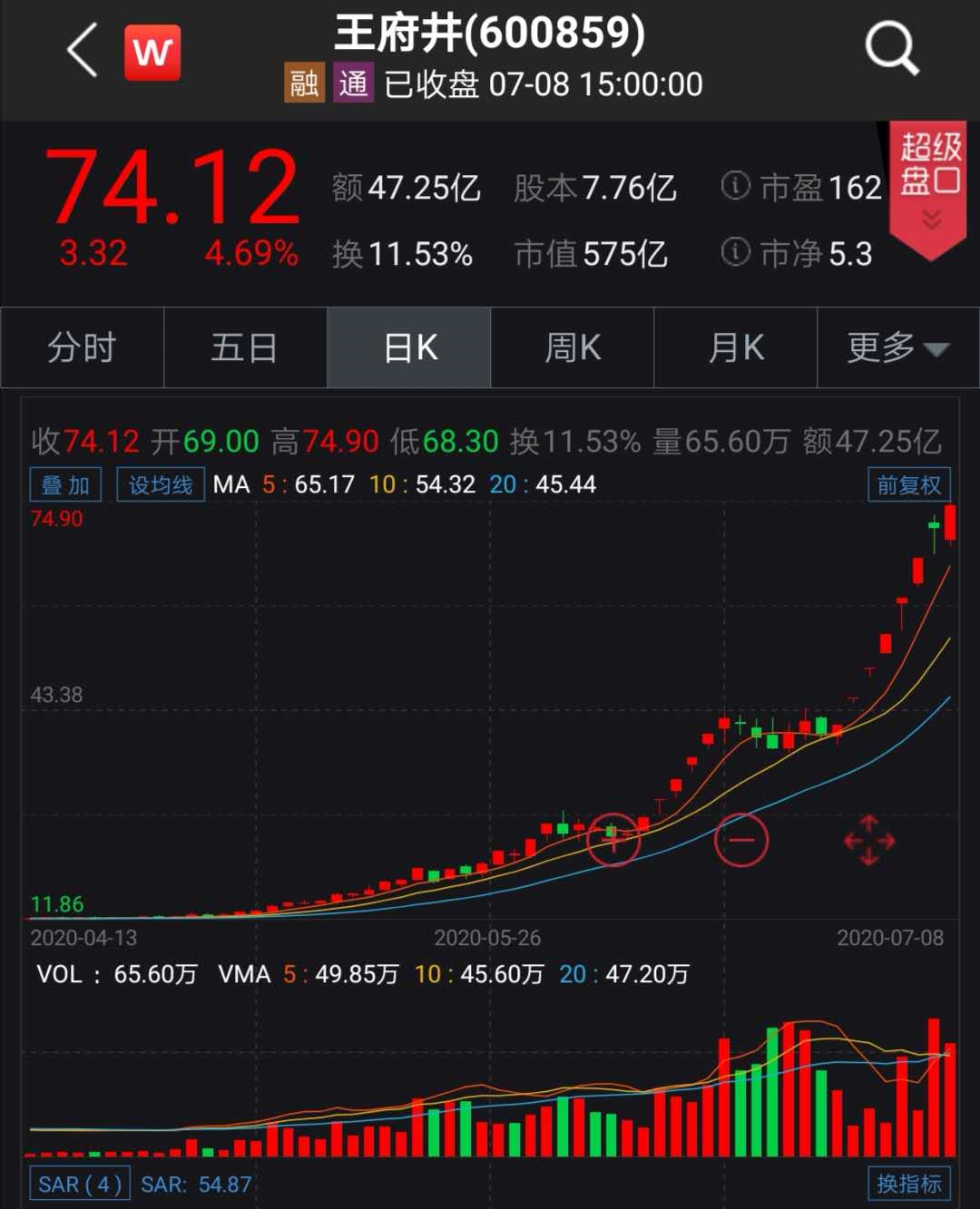 王府井今天(7月8日)晚间公告称,公司拟投资设立全资子公司北京王府井免税品经营有限责任公司,注册资本为5亿元,用于开展免税品经营等业务。此外,王府井集团还宣称,将在武汉斥资260亿建购物中心和免税店。受益免税经济政策利好,今年以来王府井股价涨逾4倍。截至今天收盘,王府井涨4.69%,报收74.12元/每股。
