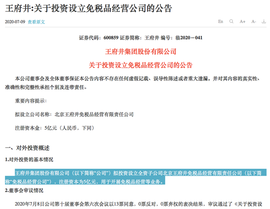 7月8日晚间,王府井公告称,公司拟投资设立全资子公司北京王府井免税品经营有限责任公司(“免税品经营公司”),注册资本为5亿元,用于开展免税品经营等业务。