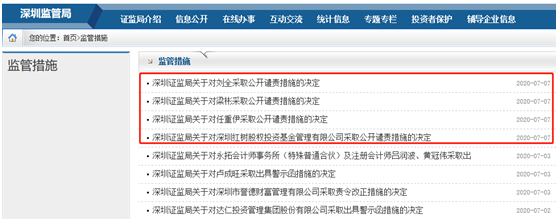 深圳证监局对红树基金及其高管采取行政监管措施,通过官方网站、深圳市投资基金同业公会微信公众号和深圳私募信息服务平台等公开渠道,对其予以公开谴责。